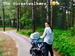 Evcen'den sürpriz bir kare geldi. Güzel oyuncu, oğlu Karan ile orman yürüyüşüne çıktı. Karan’ın fotoğrafı çekilmesin diye de bebek arabasının üstünü kat kat kapattı.