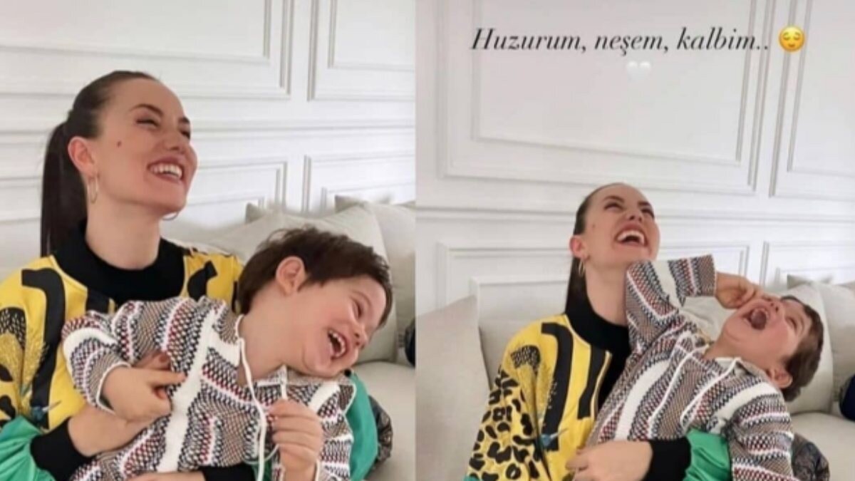 İki yaşındaki Karan Özçivit ile evde gülücükler saçtığı pozları paylaşan 35 yaşındaki oyuncu, önce kalp emojiisyle birlikte "Hayatım" mesajını yazdı, ardından "Huzurum, neşem, kalbim" notunu düştü.