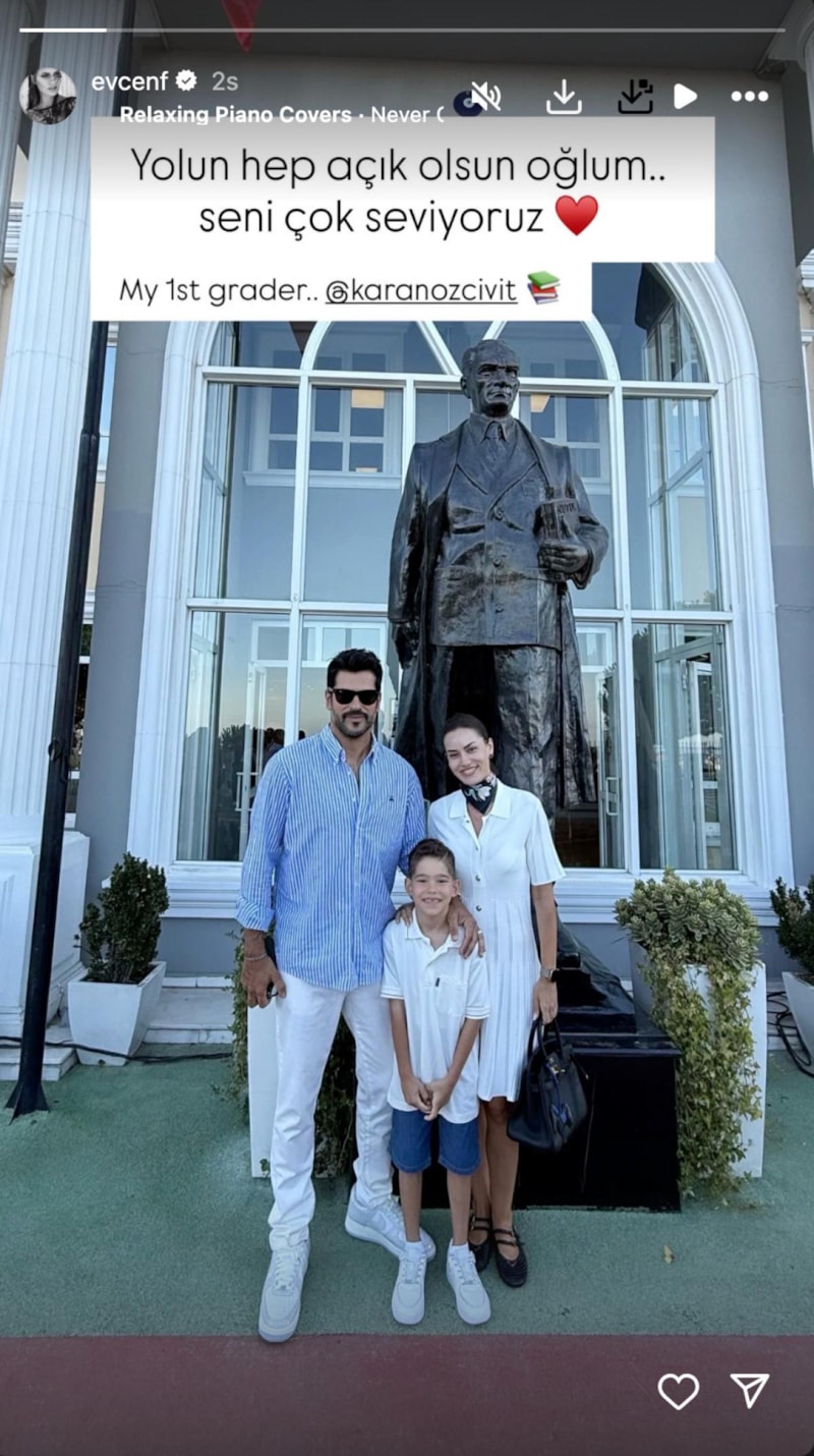 Çift, oğulları Karan’ın ilkokul kaydını yaptı. Kayıt sonrası ailece verdikleri pozlar sosyal medyada büyük ilgi gördü.