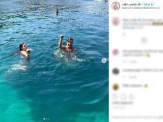 Bodrum'da tatil yapan Fatih Ürek, denizde yılan dansı yaptı; o anları sosyal medya hesabından paylaştı.