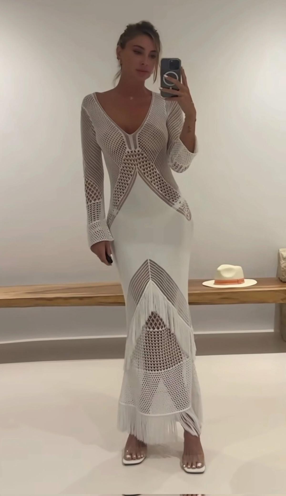 Subaşı, katıldığı bir davette giydiği beyaz transparan elbisesiyle ayna önünde kendisini videoya çekti.