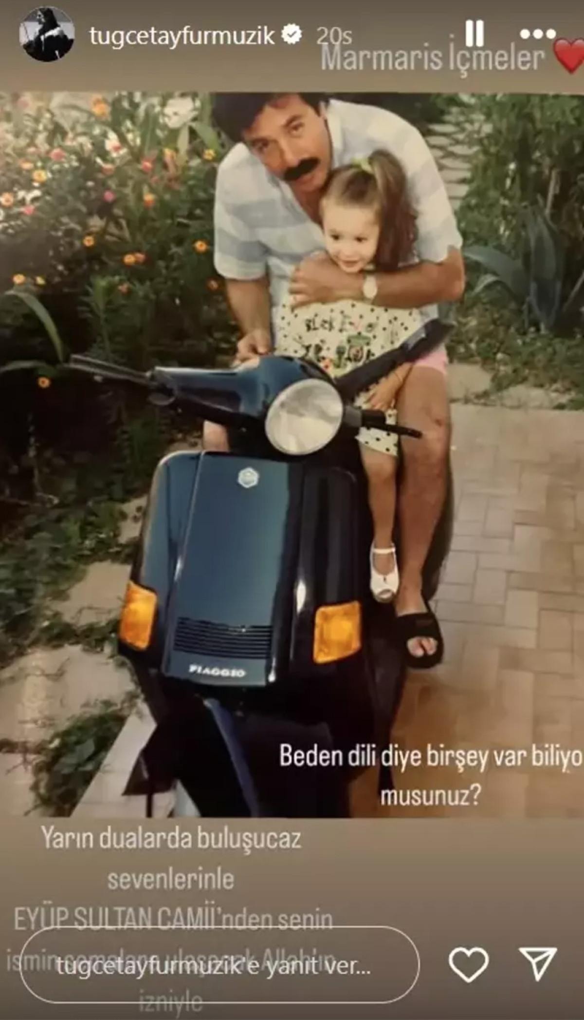 Ferdi Tayfur'un vefatının 40. gününde babasıyla çekilen bir fotoğrafını yayınlayan Tuğçe Tayfur, "Beden dili diye bir şey var biliyor musunuz?" ifadelerini kullandı.