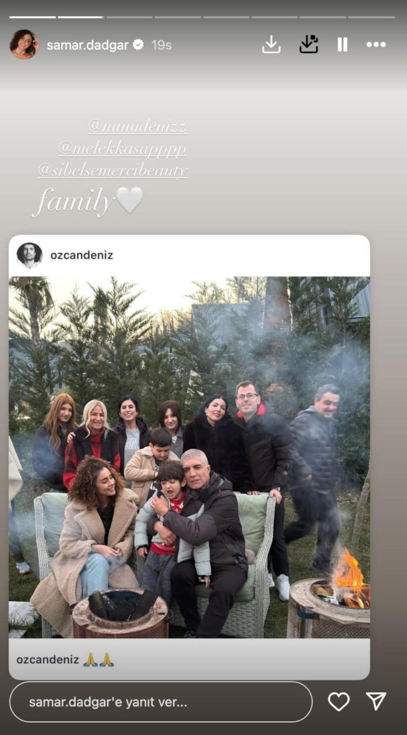 Samar Dadgar, Özcan Deniz'in kız kardeşleriyle verdiği pozu sosyal medyadan yayınladı. Yayınladığı kareye "The görümce" yazdı.