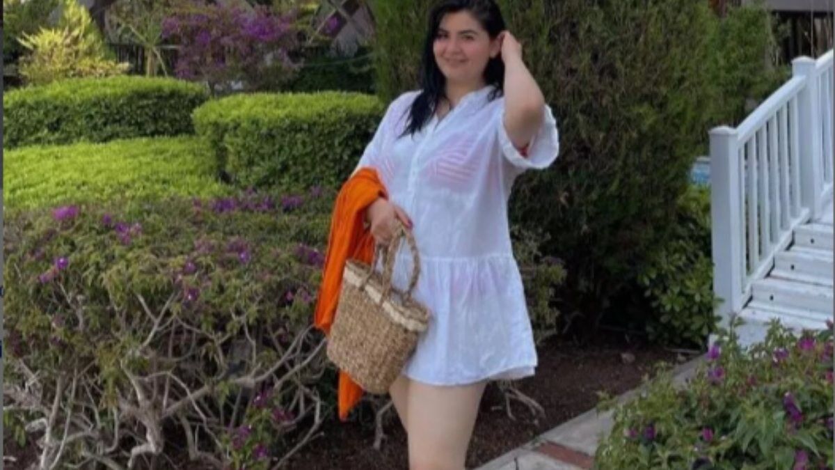 Takipçilerinin her fırsatta eski halini hatırlattığı Hanife bikinisinin üstüne beyaz bir mini elbise giyip poz verdi.