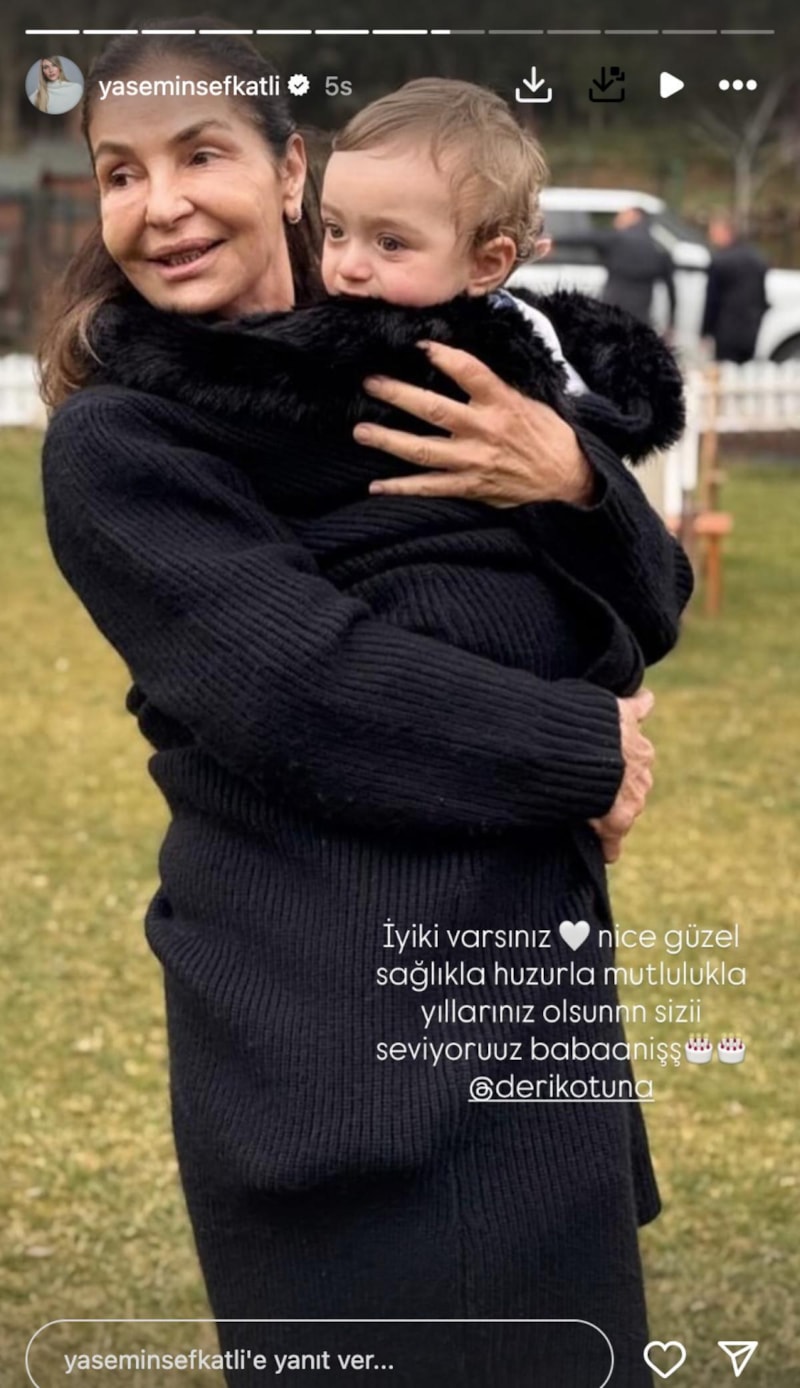 Oğluyla kayınvalidesinin bir karesini yayınlayan Şefkatli, "İyi ki varsınız. Nice güzel sağlıkla, huzurla, mutlulukla yıllarınız olsun. Sizi seviyoruz babaniş." ifadelerini kullandı.