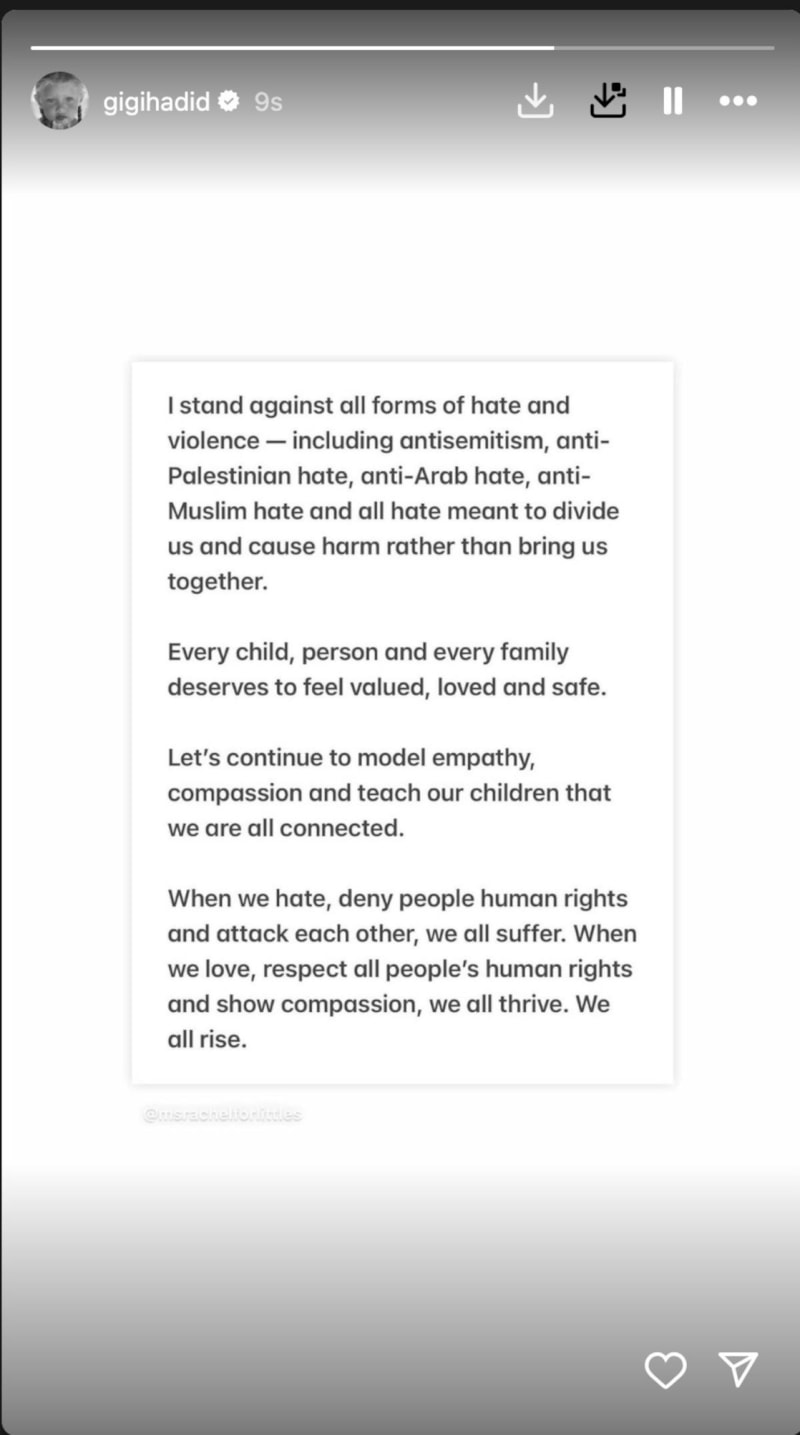 Pek çok insan hakları savunucusu ve aktivist de destek verdiği gemiyle ilgili bir paylaşım da Gigi Hadid'den geldi.