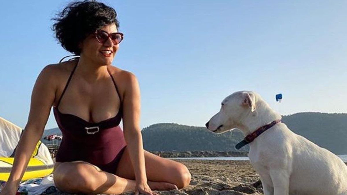 Plajda yanına gelen köpekle poz veren ünlü şarkıcı, kareye "Yeni hafta kadrajıma giren bu beyfendi gibi tatlı tesadüflerle geçsin." notunu düştü.