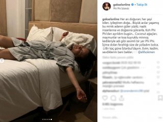 Göksel, paylaştığı toplu fotoğrafların altına "Her an doğuran, her şeyi bilen, iyileştiren doğa... Büyük acılar yaşamış bu minik adanın güler yüzlü, nazik insanlarına ve doğasına şükranla, Koh Phi Phi'den ayrıldım bugün" notunu düştü.