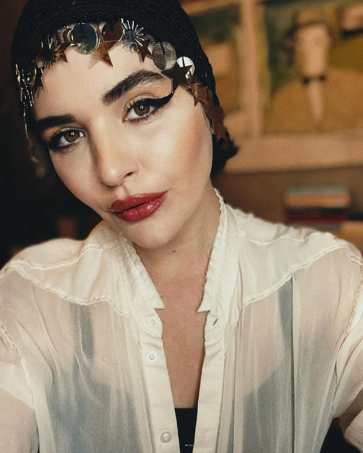 Başarılı oyuncu, göğüs dekolteli ve sütyensiz pozlarını paylaştı.