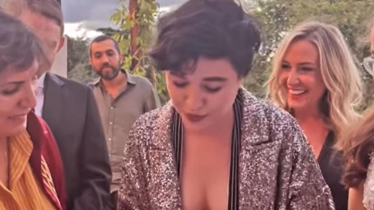 Konuşmasıyla düğündeki konukları güldüren Vuslateri, derin göğüs dekolteli kıyafetleri ile de dikkatleri üzerine çekti.