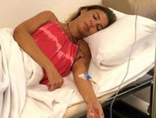 Gülben Ergen'in koluna serum takılı fotoğrafını Instagram'ın hikaye bölümünden paylaştı.