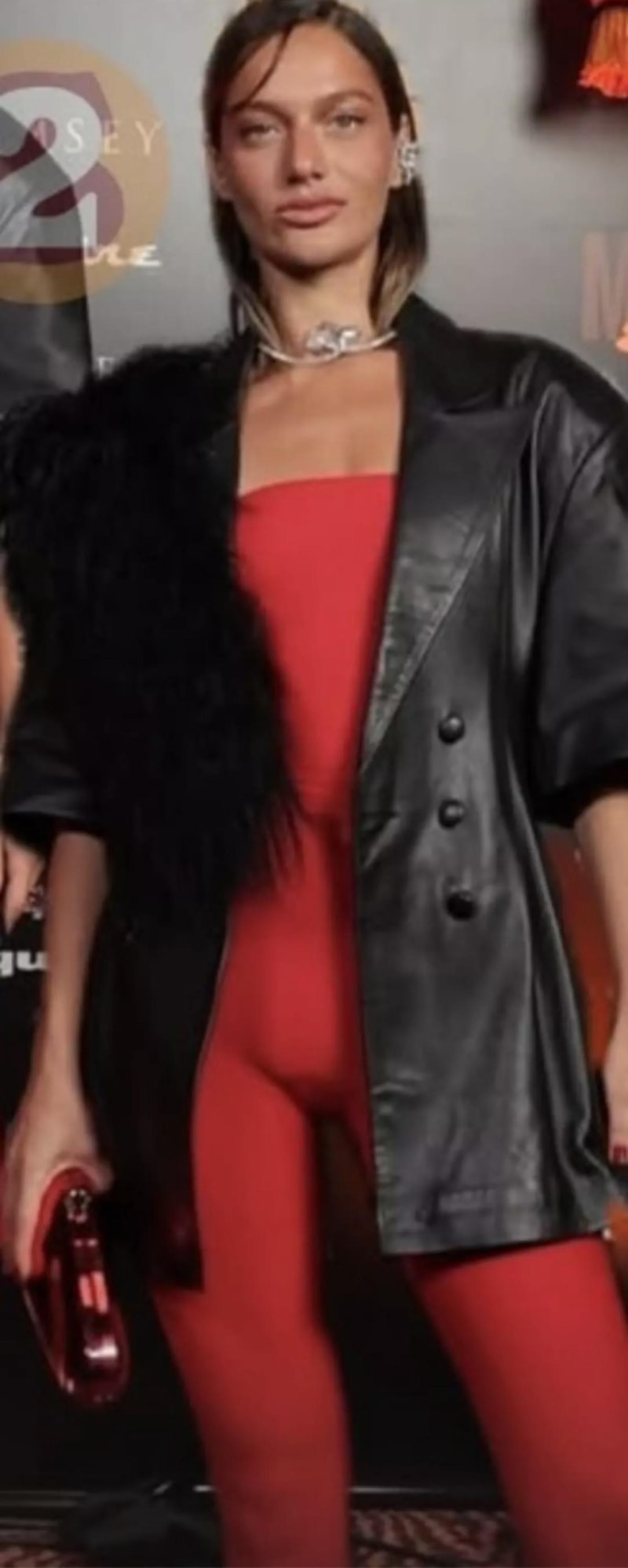 Geceye kırmızı iç belli eden tayt tulum ile katılan Gülcan Arslan bu haliyle pek beğenilmedi. Kombinini deri ceketi ve ışıltılı bir kolye ile tamamlayan Arslan'ın cesur tarzı, yorum yağmuruna tutuldu.