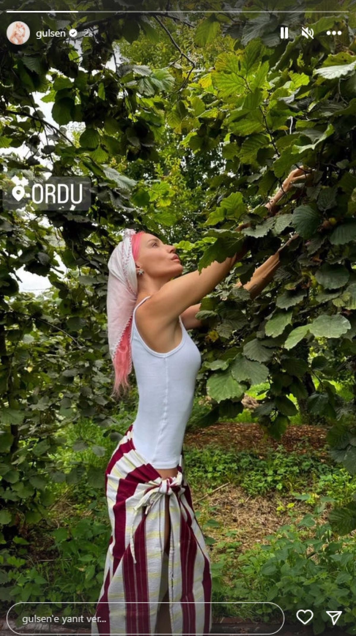 Sosyal medya hesabından paylaşımlarda bulunan Gülşen, son olarak fındık bahçesinde poz verdi.
