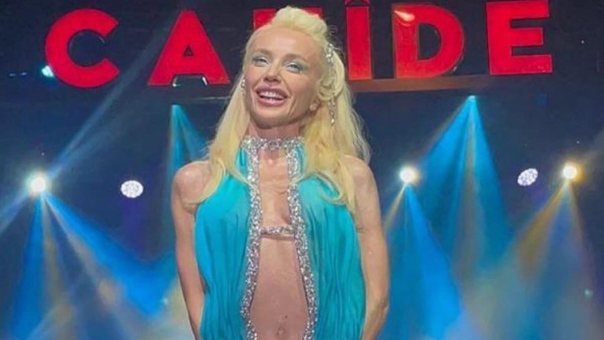 Cesur kıyafetleriyle sürekli gündem olan Gülşen, yine ilginç bir kıyafetle sahneye çıktı. Mini ve transparan elbiselerle görmeye alıştığımız ünlü şarkıcı, bu sefer bileklerine kadar mavi uzun bir elbise tercih etti. Yalnız elbisenin neredeyse ön tarafı komple açıktı.
