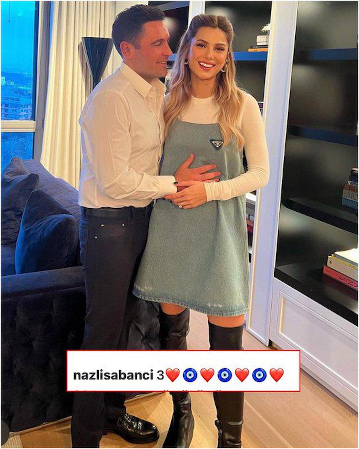 Kayı, paylaşımına nazar boncuğu ve kalp emojileriyle "3" notunu düştü. Çifte tebrik mesajları yağdı.