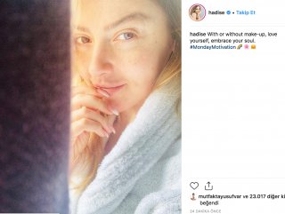 Tatilden dönen güzel şarkıcı, sabah yataktan kalkar kalmaz fotoğrafını çekti ve Instagram hesabından paylaştı. Sıfır makyajlı haliyle poz veren Hadise, bir de takipçilerine 'Kendinizi sevin' mesajı verdi.