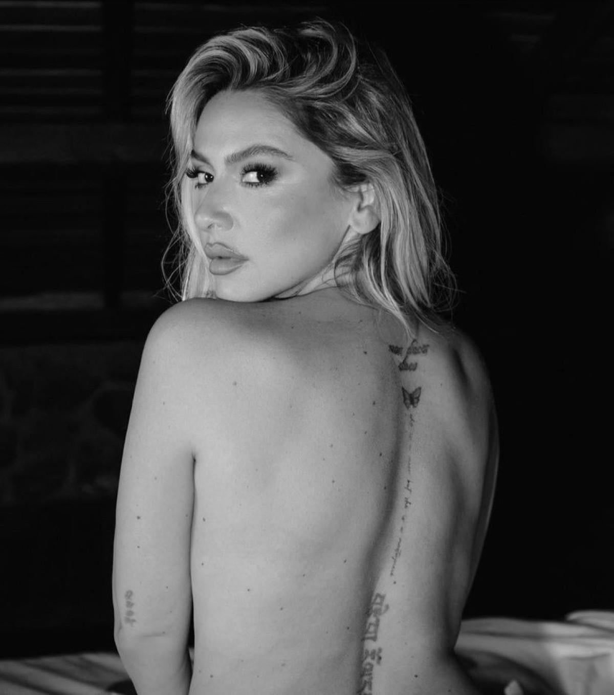 Üstsüz poz veren Hadise, sırt dekoltesiyle göz aldığı kareyi "Kimse sen gibi sevmiyor" notuyla paylaştı.