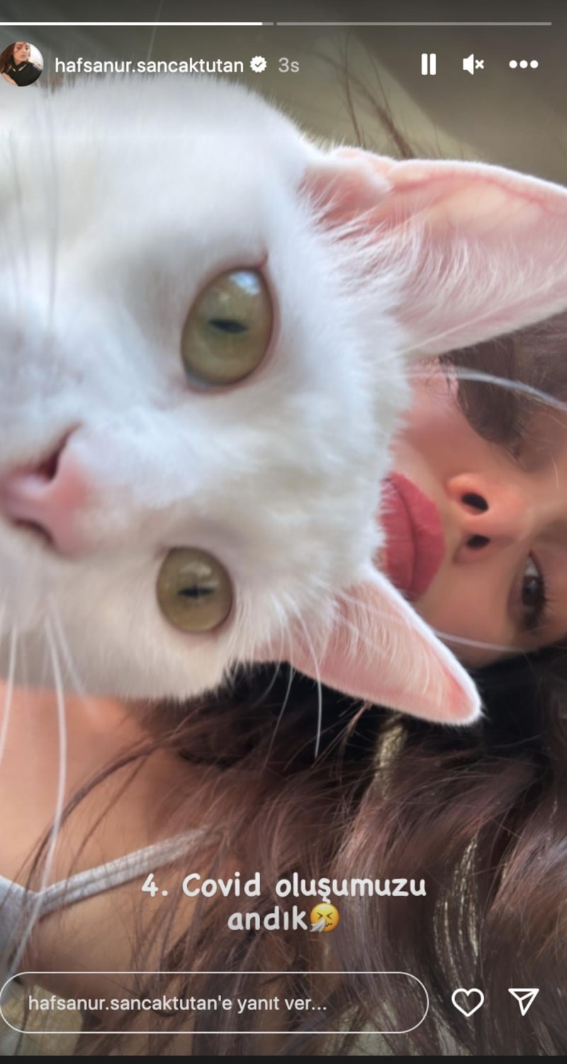 Sosyal medyada aktif olan oyuncu, kedisiyle olan karesini paylaştı. Sancaktutan, paylaşıma ise "Dördüncü covid oluşumuzu andık" notunu düştü.