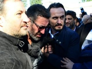 Cenaze namazının kılınmasının ardından ayakta durmakta zorlanan Hakan Altun'a futbolcu Tuncay Şanlı ve sanatçı Ercan Saatçi koluna girerek destek verdi.