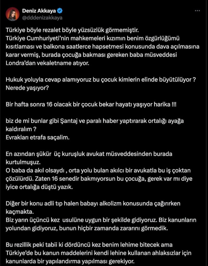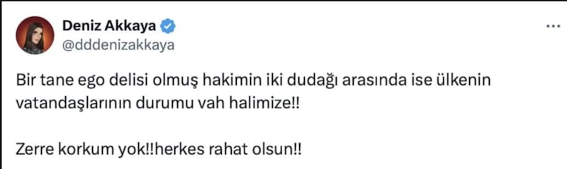 Sosyal medya hesabından dikkat çeken açıklamalarına devam eden Deniz Akkaya, hakkında çıkan gözaltı kararına dair ilk yorumunu da X hesabı üzerinden yaptı.