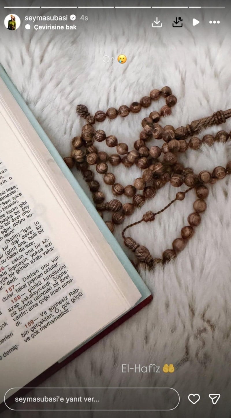 Ünlü fenomen, bu paylaşımın ardından ise Kur'an-ı Kerim paylaşarak dikkat çekti.