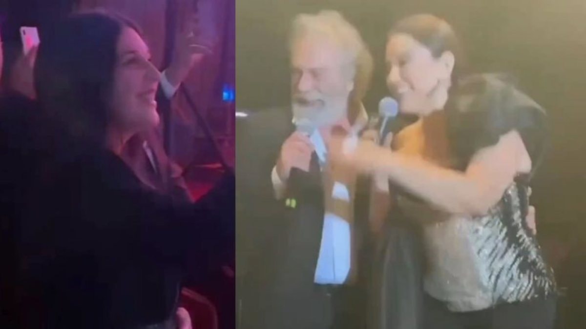 İkili, sahnede Duman'ın 'Senden Daha Güzel' şarkısını seslendirdi, kızları Nazlı da o anları cep telefonuyla kaydetti.