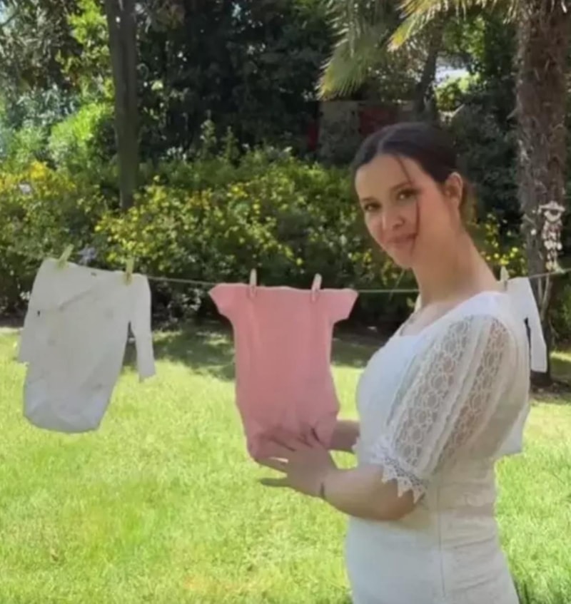 Askıya pembe bebek elbisesi asan ünlü oyuncu, kızı olacağını müjdeledi.