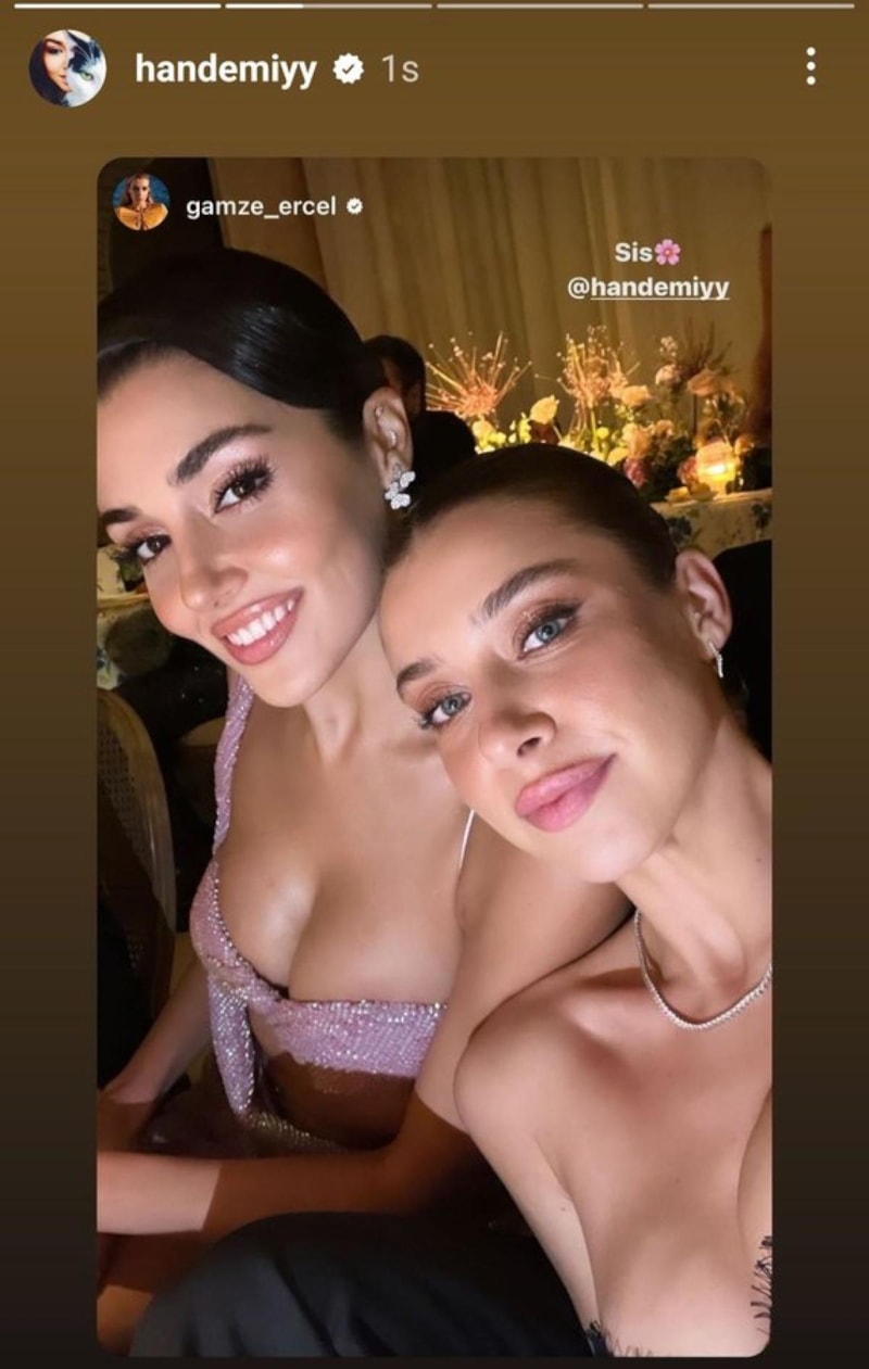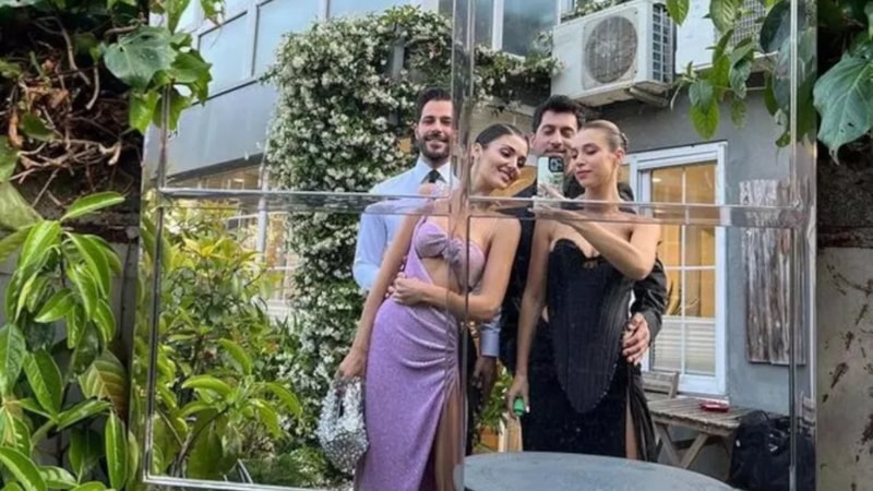 Hande Erçel, düğünde sevgilisi Hakan Sabancı, ablası Gamze Erçel ve eniştesi Caner Yıldırım ile birlikte mutluluk pozu verdi.