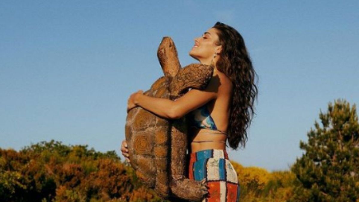 Her yaptığı her paylaşımı olay olan Erçel, şimdi de dev kaplumbağa ile verdiği pozla konuşuluyor.
