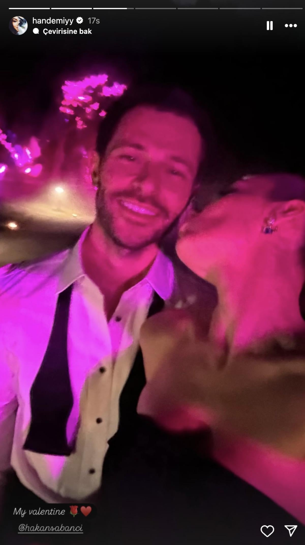 Erçel, son olarak Hakan Sabancı'yı öptüğü romantik bir kareyi takipçileriyle paylaştı ve altına, "Sevgilim" notunu düştü.