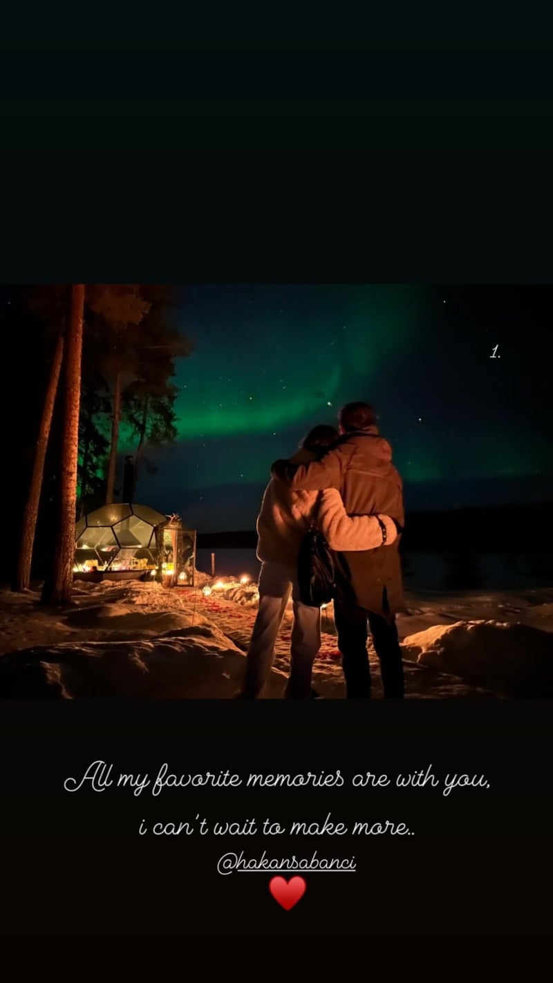 Birlikte Kuzey Işıkları'na gittikleri andan karelerini paylaşan oyuncu, şu notu ekledi: