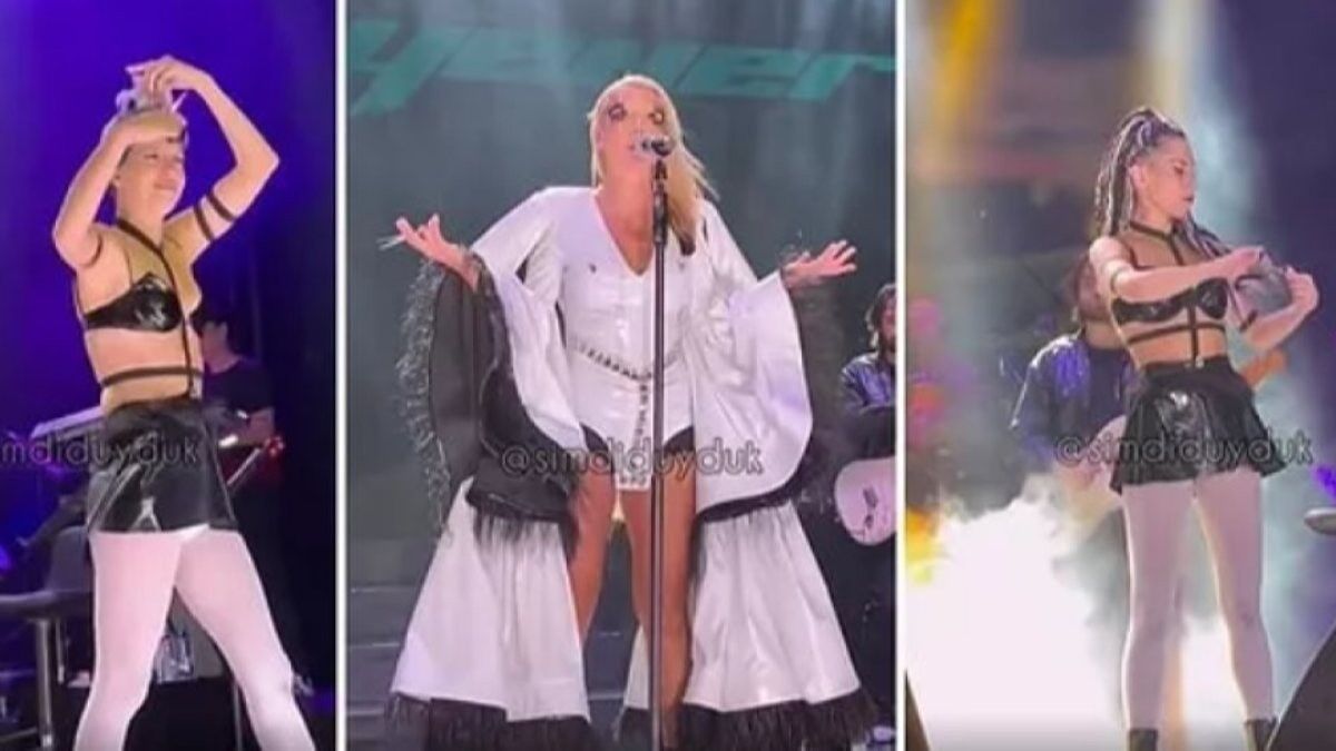 Kuruçeşme'de dün akşam konser veren şarkıcı Hande Yener ve dansçı ekibi, protestolara destek vererek sahnede saçlarını kesti.