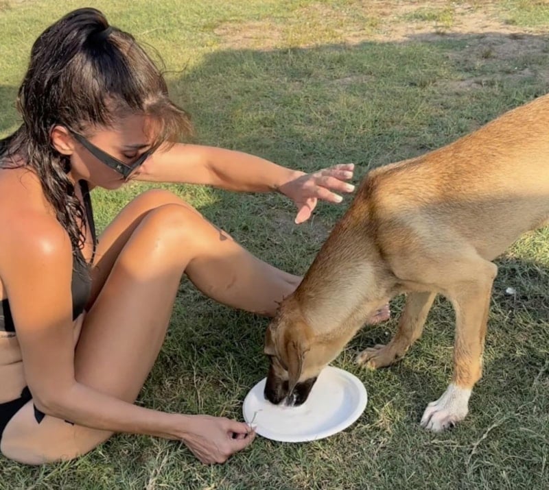 Antalya tatili sırasında yanına gelen sokak köpeğini besleyen önce süt ve ardından da cici mama veren Hande Yener, bununla kalmadı.