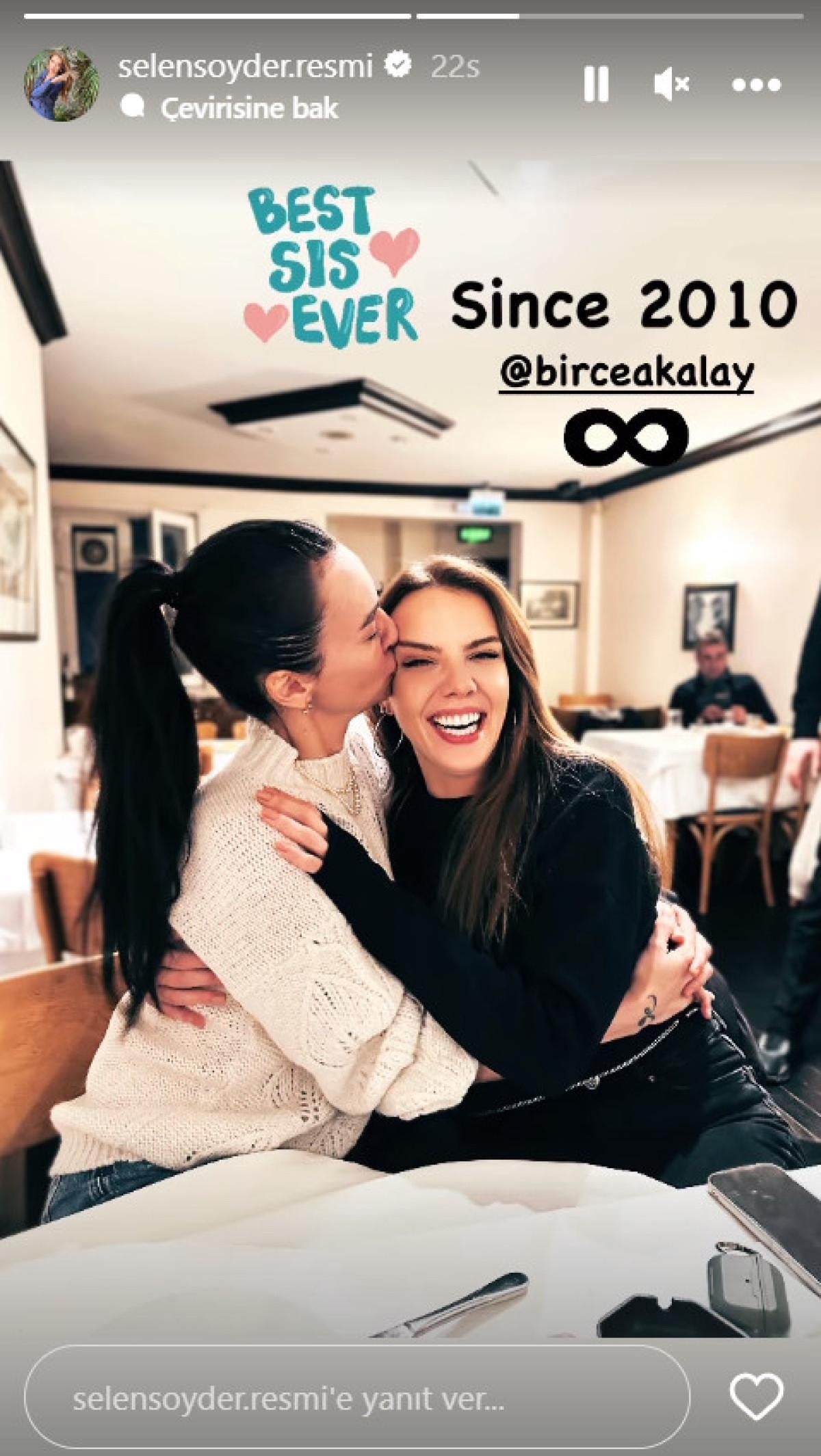 Soyder de Akalay’ın kendisini öptüğü fotoğrafı, altına İngilizce "2010 yılından beri 2010’dan beri en iyi kız kardeş" notuyla hikayesine ekledi.