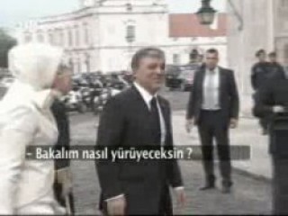 Araçtan önce inen Abdullah Gül, göz ucuyla eşi Hayrünnisa Gül'ün topuklu ayakkabılarına bakıp "Bakalım nasıl yürüyeceksin" diyerek kendisini uyardı.