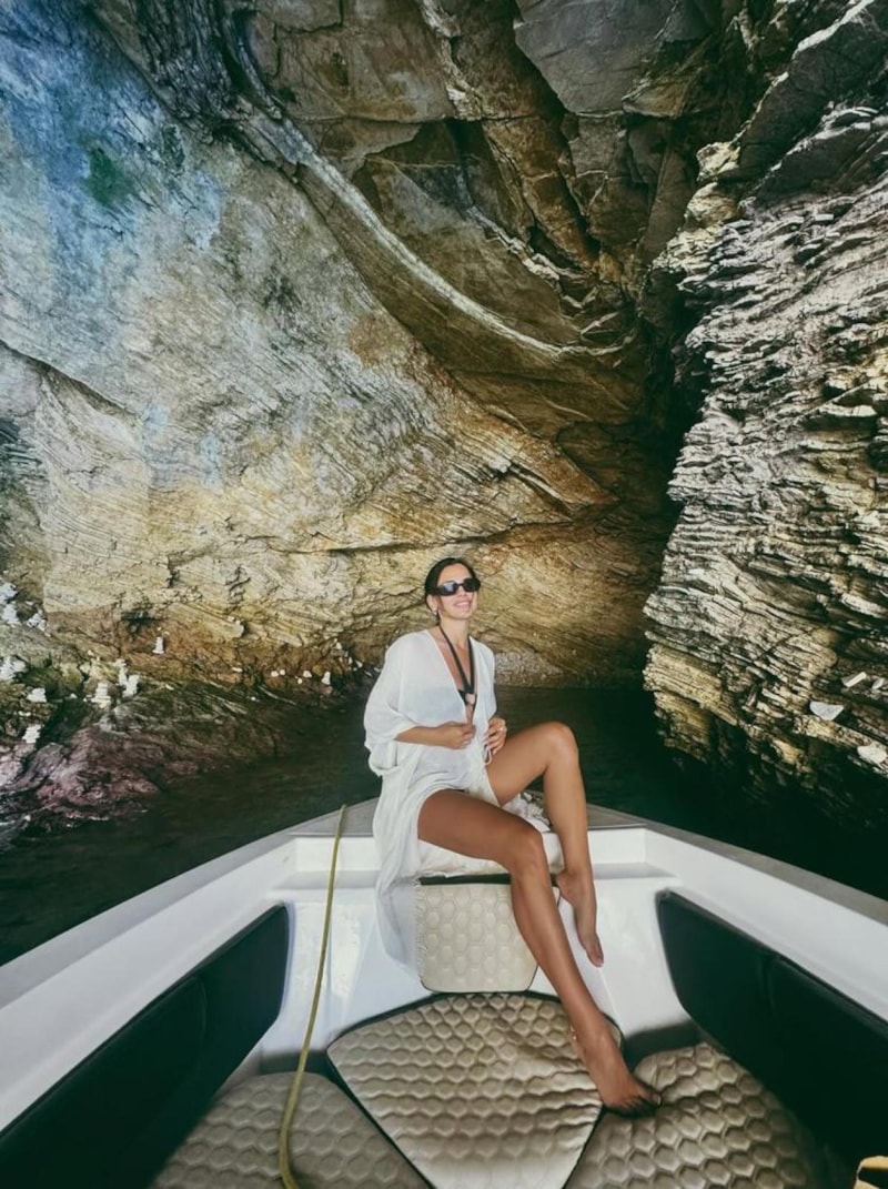 Nişanlısı ile tekne turu yapan Hazal Çağlar, bir mağarada Samet Akaydın'a poz verdi.