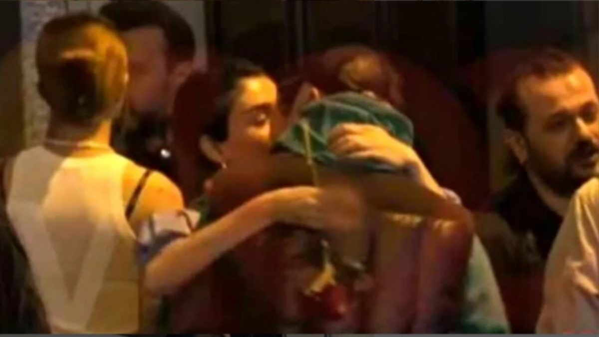 İkili, gecenin sonuna doğru çevresindeki kimseyi umursamadan öpüşmeye başladı. Dudak dudağa yakalanan çift sosyal medyada gündem oldu.