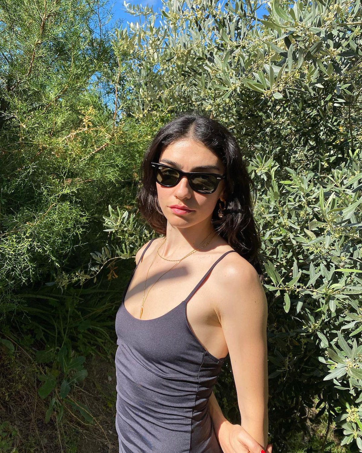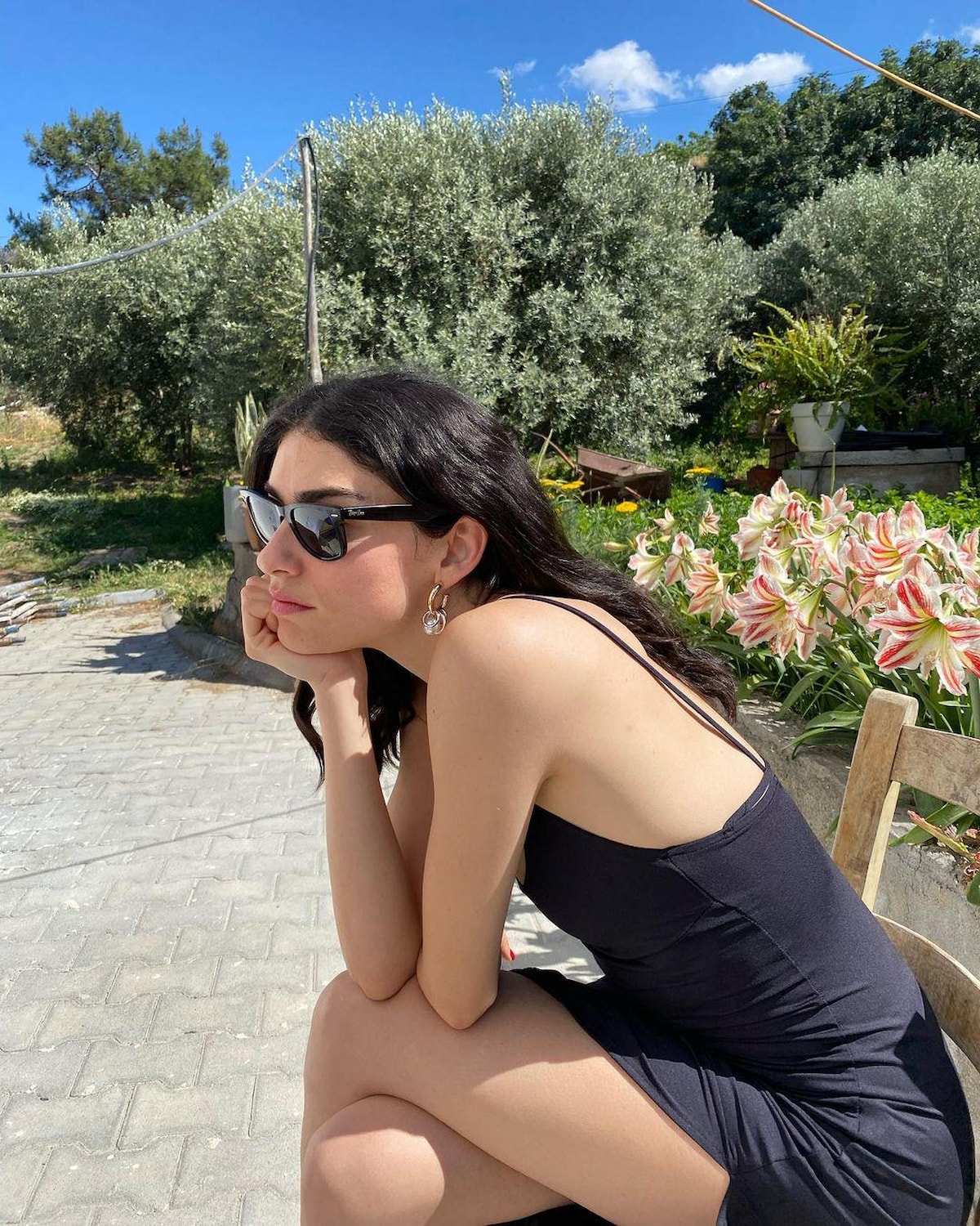 Sosyal medyayı da aktif kullanan genç oyuncu, son olarak içine sütyen giymediği siyah elbisesiyle pozlarını sosyal medya hesabından paylaştı. Ergüçlü'nün pozları ortalığı adeta yıktı.