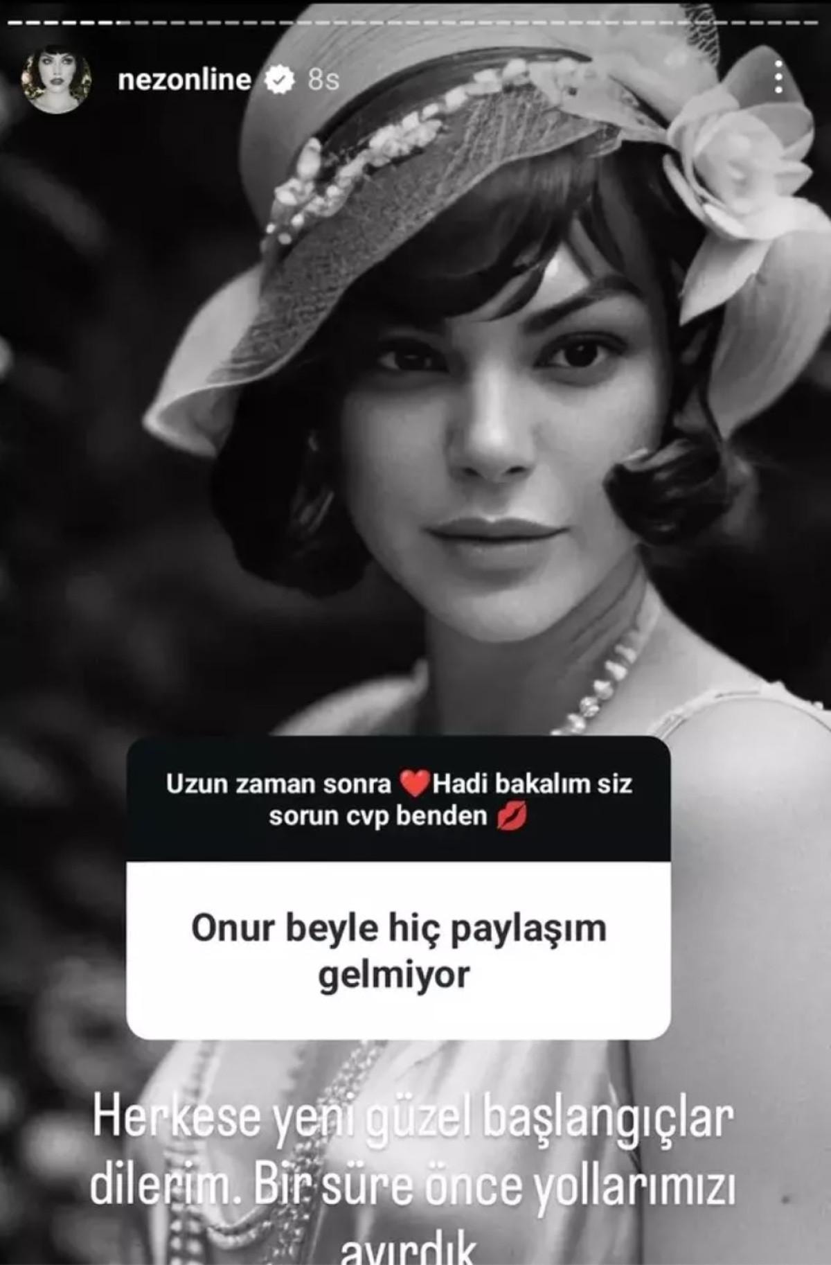 Sessiz sedasız yollarını ayıran ikili birbirini sosyal medya üzerinden takipten de çıktı. Nez, sorular üzerine "Herkese yeni güzel başlangıçlar dilerim. Bir süre önce yollarımızı ayırdık." dedi.