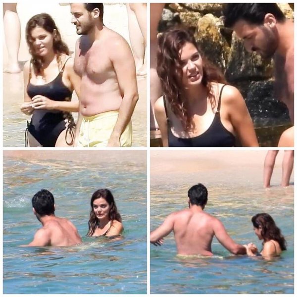 Taze aşıklar önceki gün ünlü bir sahile gitti. Arkadaşlarının da eşlik ettiği Altınbilek ve Aydoğan, denize birlikte girdi.