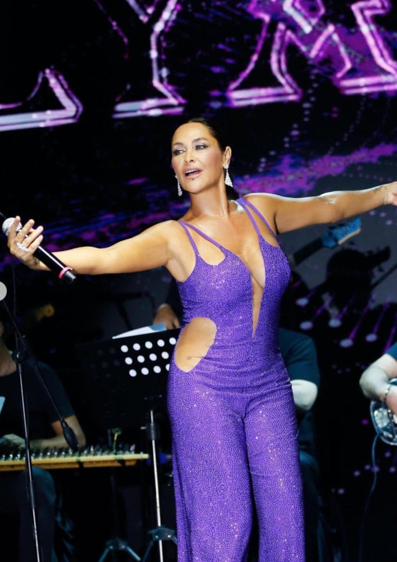 Avşar, konserinde ön, yan ve sırt kısmı dekolteli, taşlarla süslü mor tulumuyla dikkat çekti. Şarkıcının taşlarla kaplı, 5 kilo ağırlığındaki mor tulumu hayranlarından da beğeni aldı.