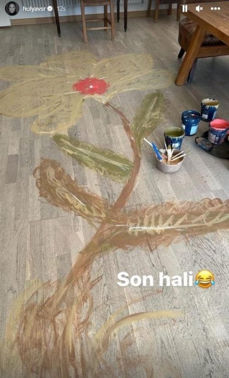 Siyah bikinisi ile boy gösteren 59 yaşındaki Avşar Kızı eğlenceli anlarını paylaştığı videosuna "Her türlü parke boyanır" notunu düştü. Odasının ortasına çiçek çizen