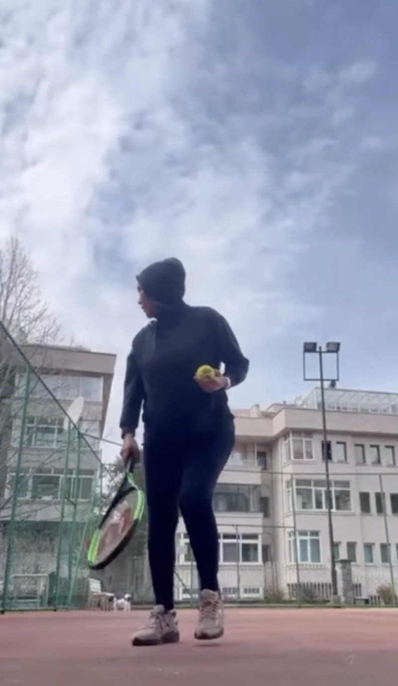 Avşar Kızı o anlara, "Hülya Avşar Cup Tenis Turnuvaları yaklaşırken göstermelik antrenmanım" dedi.