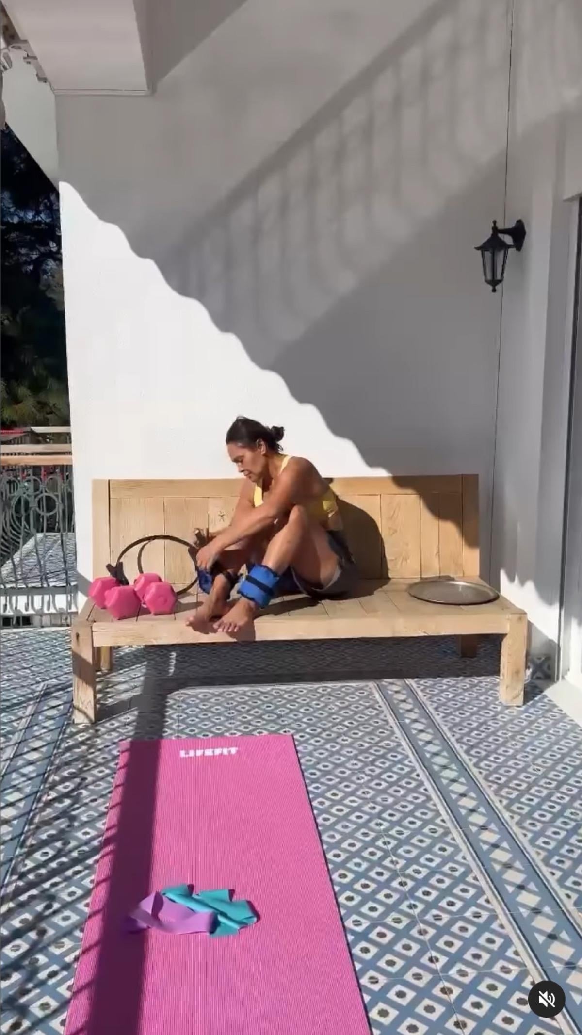 Şu sıralar Balıkesir'in Ayvalık ilçesindeki evinde olan Avşar, evinin bahçesinde spor yaptığı anları yayınladı.