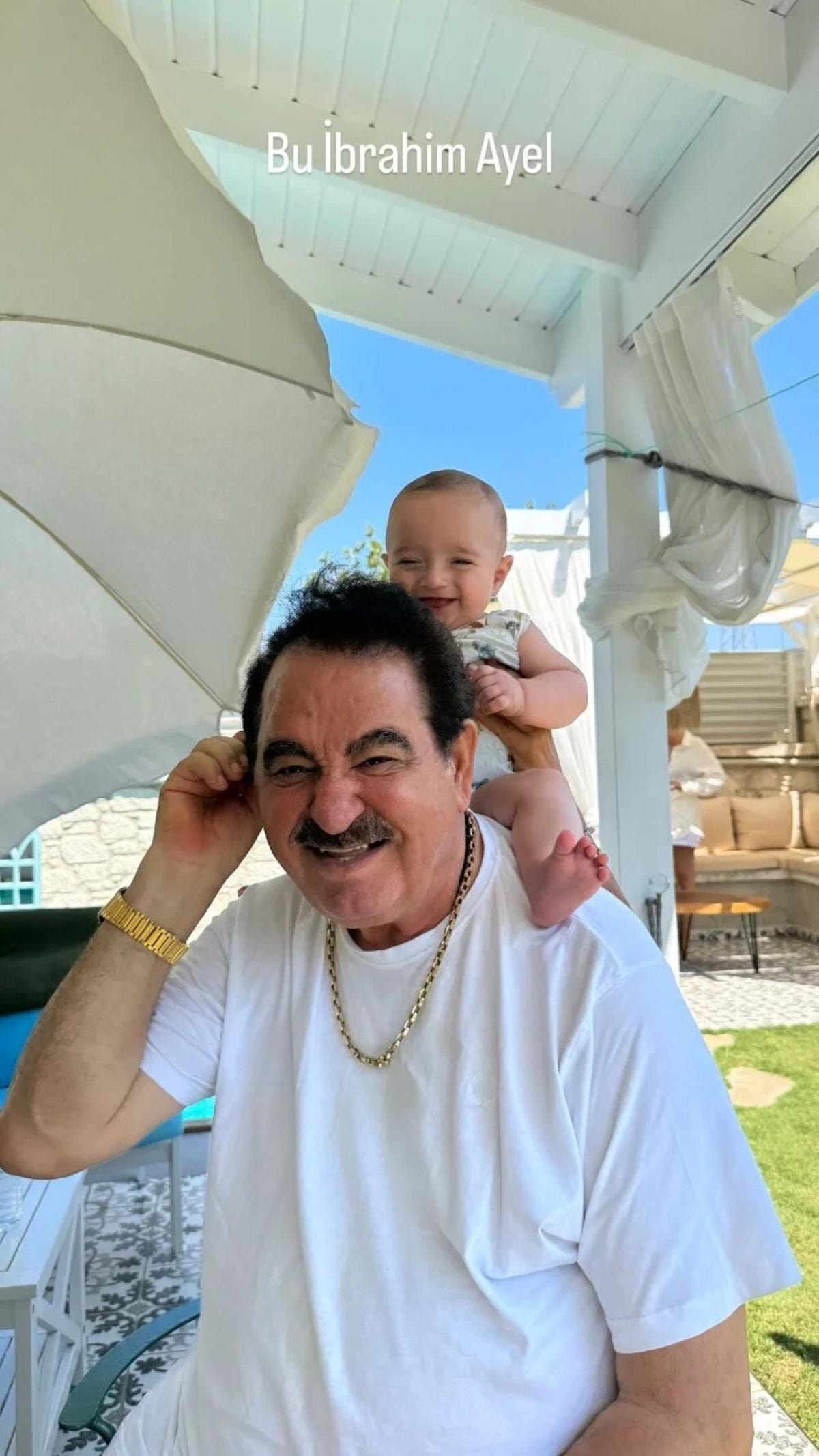 Torunlarını omzuna alan İbrahim Tatlıses'in keyifli halleri dikkat çekti.