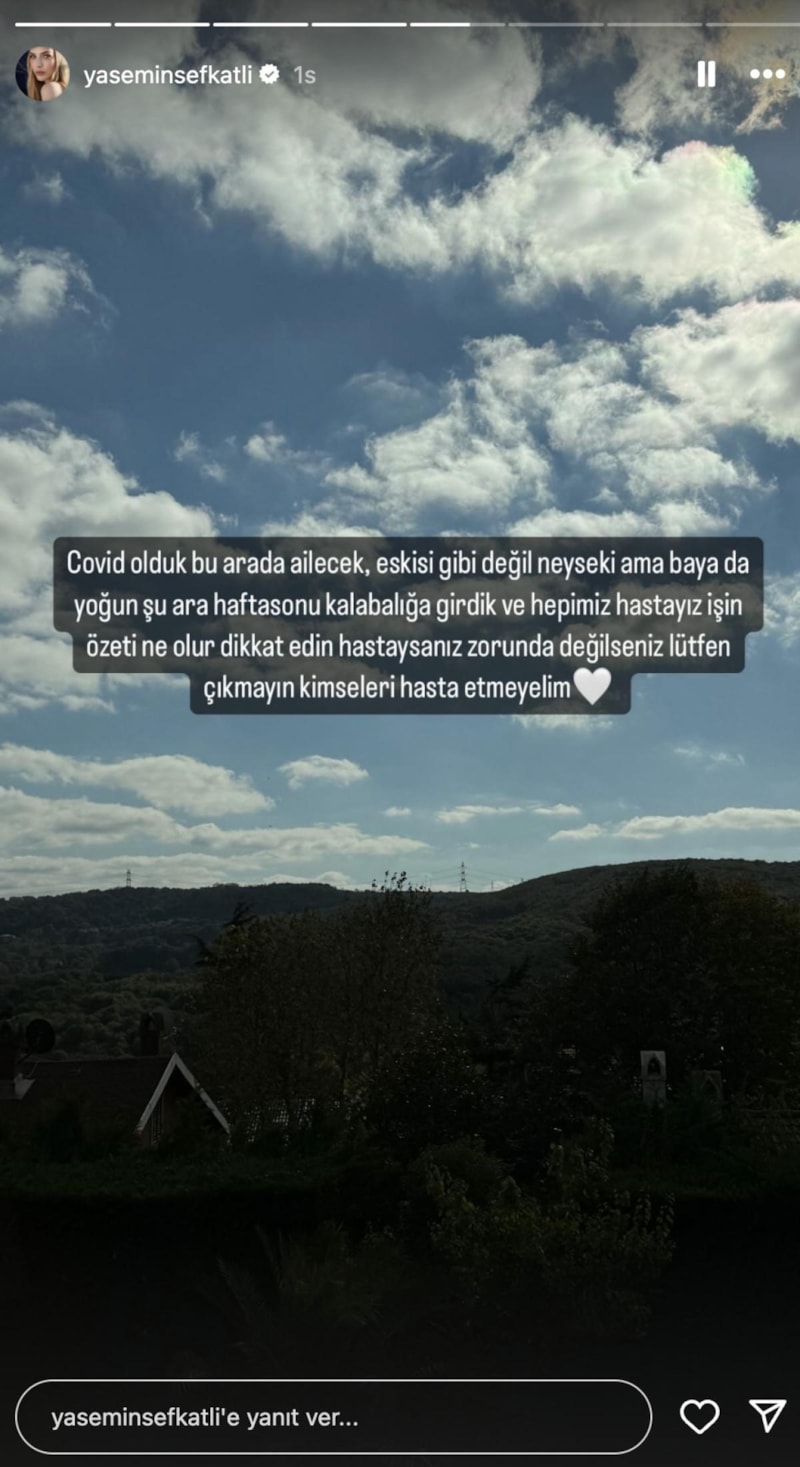 Yasemin Şefkatli, yaptığı son sosyal medya paylaşımıyla ailesiyle birlikte koronavirüse yakalandıklarını açıkladı.