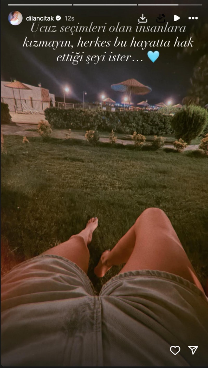 Çimlere uzandığı bir karesini yayınlayan Çıtak "Ucuz seçimleri olan insanlara kızmayın. Herkes bu hayatta hak ettiği şeyi ister" notunu yazdı.