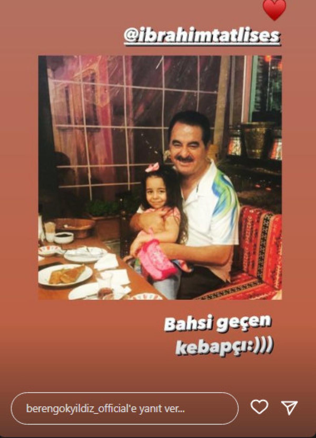 İbrahim Tatlıses'in kendisiyle ilgili paylaşımı gören Gökyıldız da sosyal medya hesabından cevap verdi. 4 yaşında İbrahim Tatlıses'le karşılaştığı o kebapçıdan fotoğraf yayınlayan Gökyıldız, "Bahsi geçen kebapçı" yazdı.
