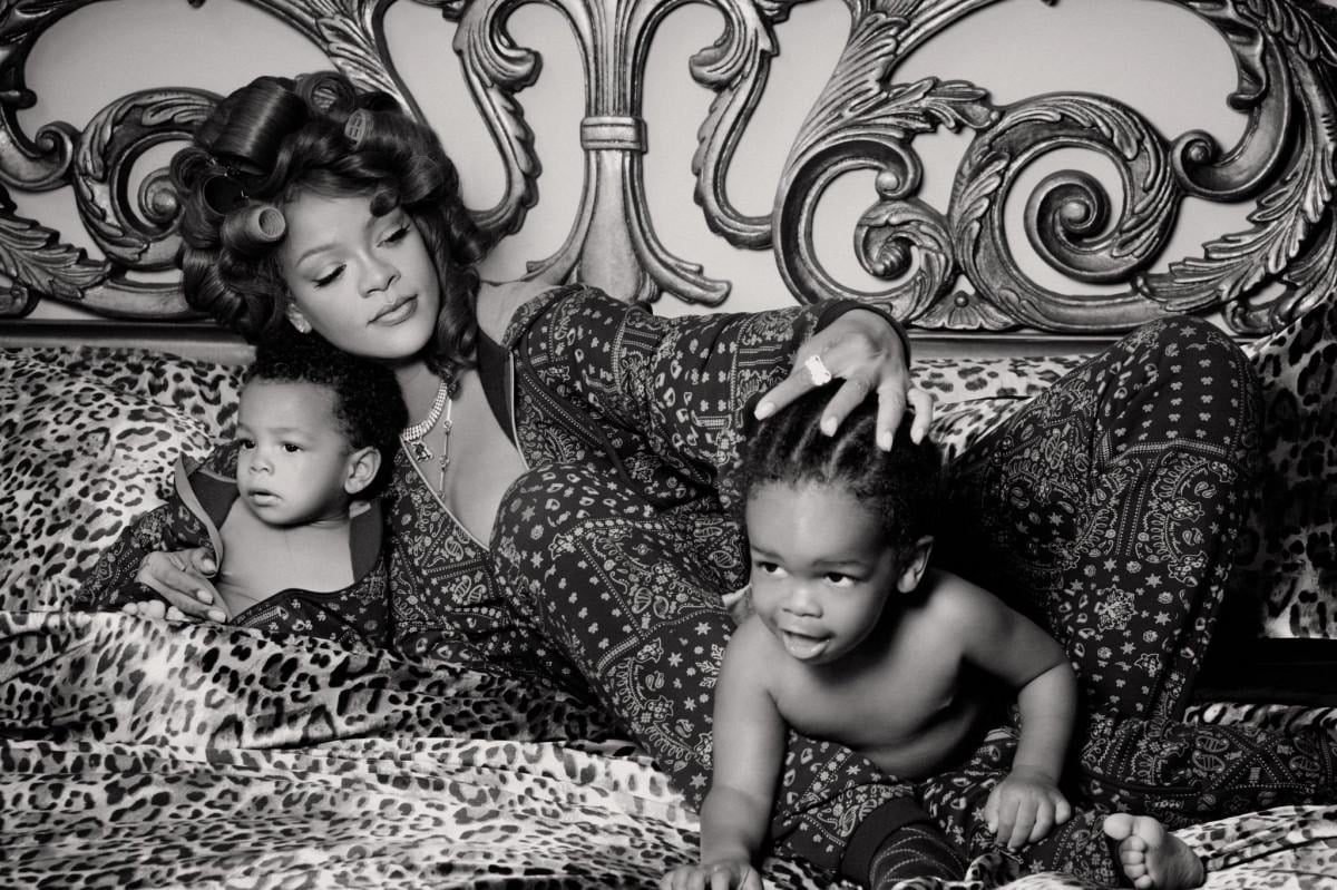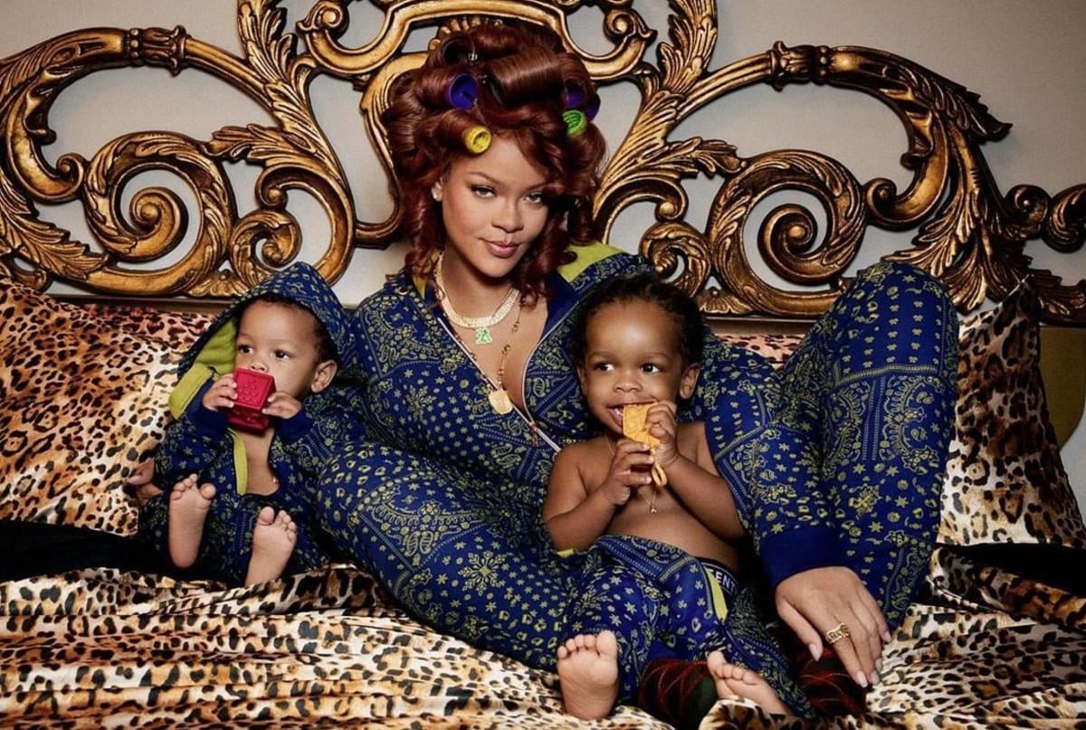 Dünyaca ünlü şarkıcı Rihanna da evinde poz verdi. Rihanna, oğullarıyla verdiği pozda aynı Serenay Sarıkaya gibi leopar desenli bir koltukta oturdu.