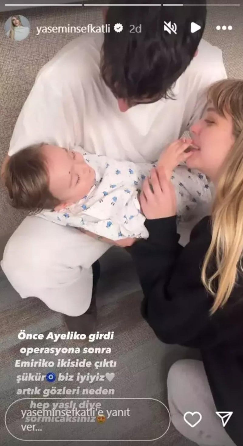 Sosyal medya hesabından oğullarının son durumu hakkında açıklama yapan Yasemin Şefkatli, "Önce Ayeliko girdi operasyona sonra Emiriko. İkisi de çıktı şükür. Biz iyiyiz. Artık gözleri neden hep yaşlı diye sormayacaksınız." dedi.